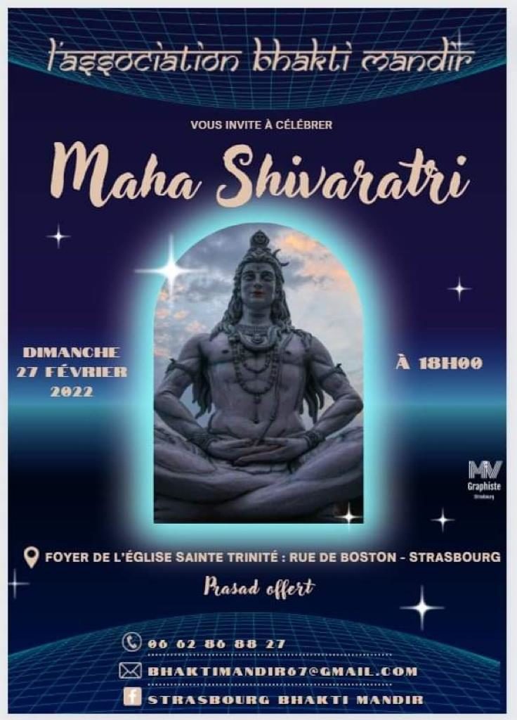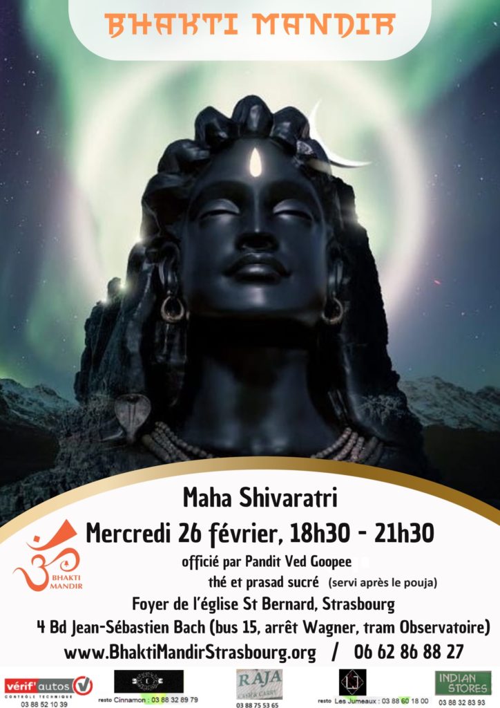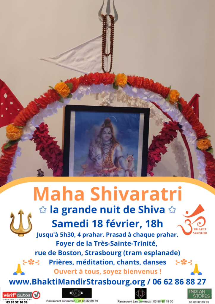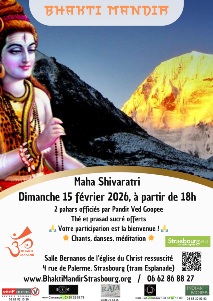 - Maha Shivaratri : dimanche 15 février 2026 à partir de 18h, à la salle Bernanos de l’église du Christ ressuscité, 4 rue de Palerme, Strasbourg (tram esplanade)